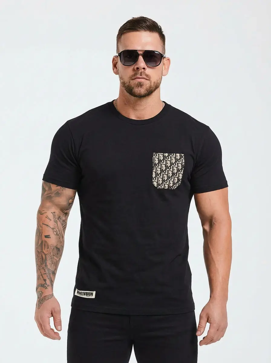 Classic Custom CD Pocket T Shirt in black crafted from premium 100% organic cotton with custom GG pocket on the chest area.